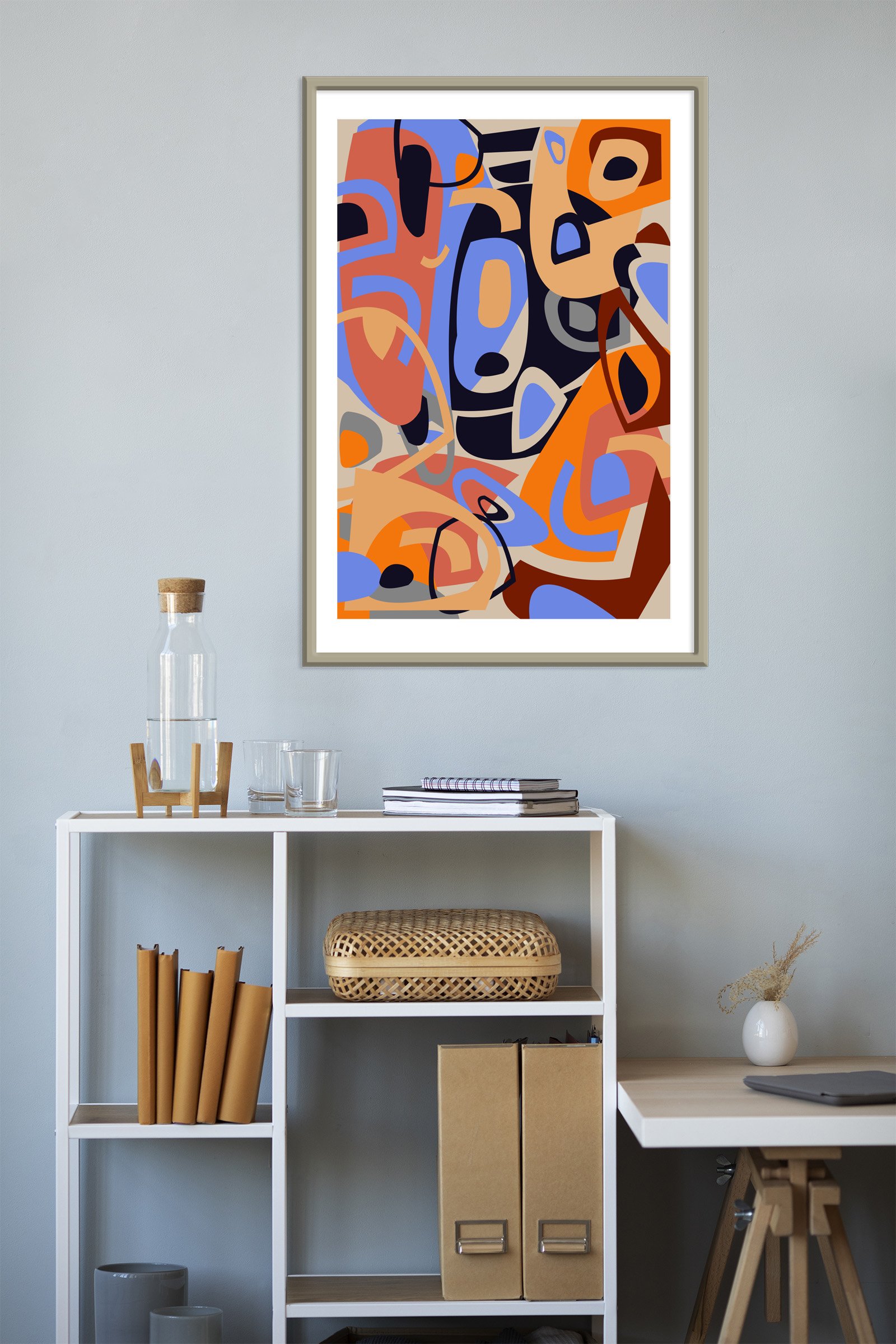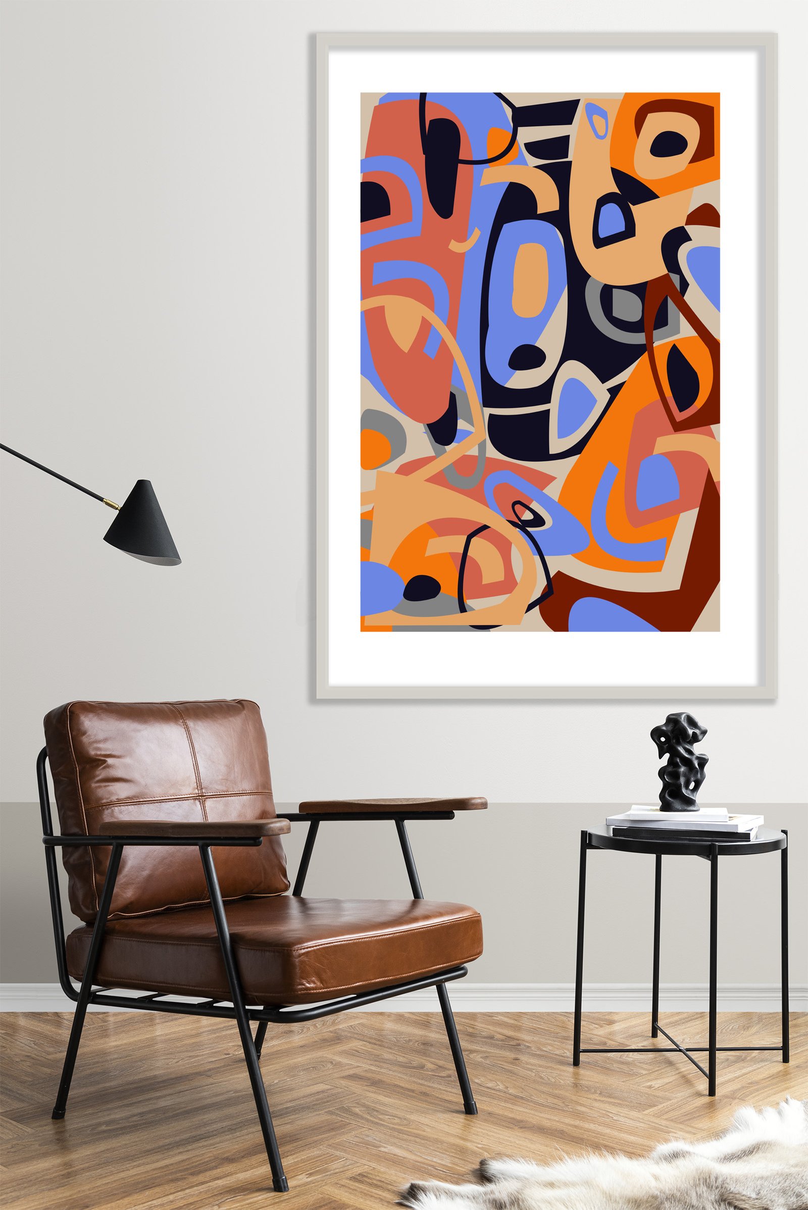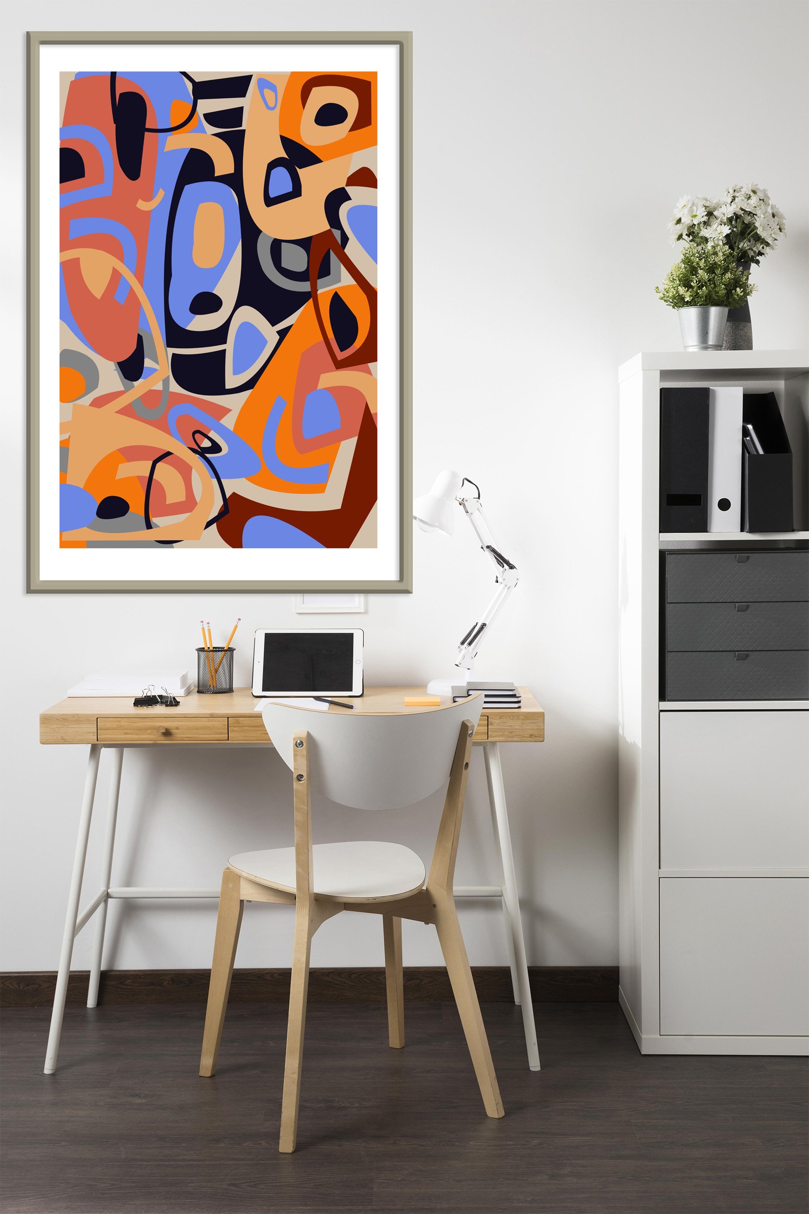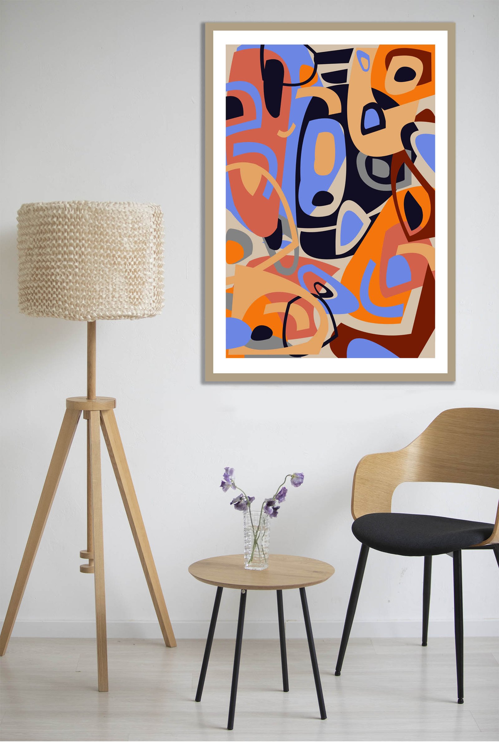 The secret to a welcoming atmosphere lies in the psychological impact of color. This artwork focuses on enhancing home decor with positive colors like warm oranges and soothing blues. Orange is known to promote creativity and social interaction, while blue provides a calming counter-balance that keeps a room feeling grounded.