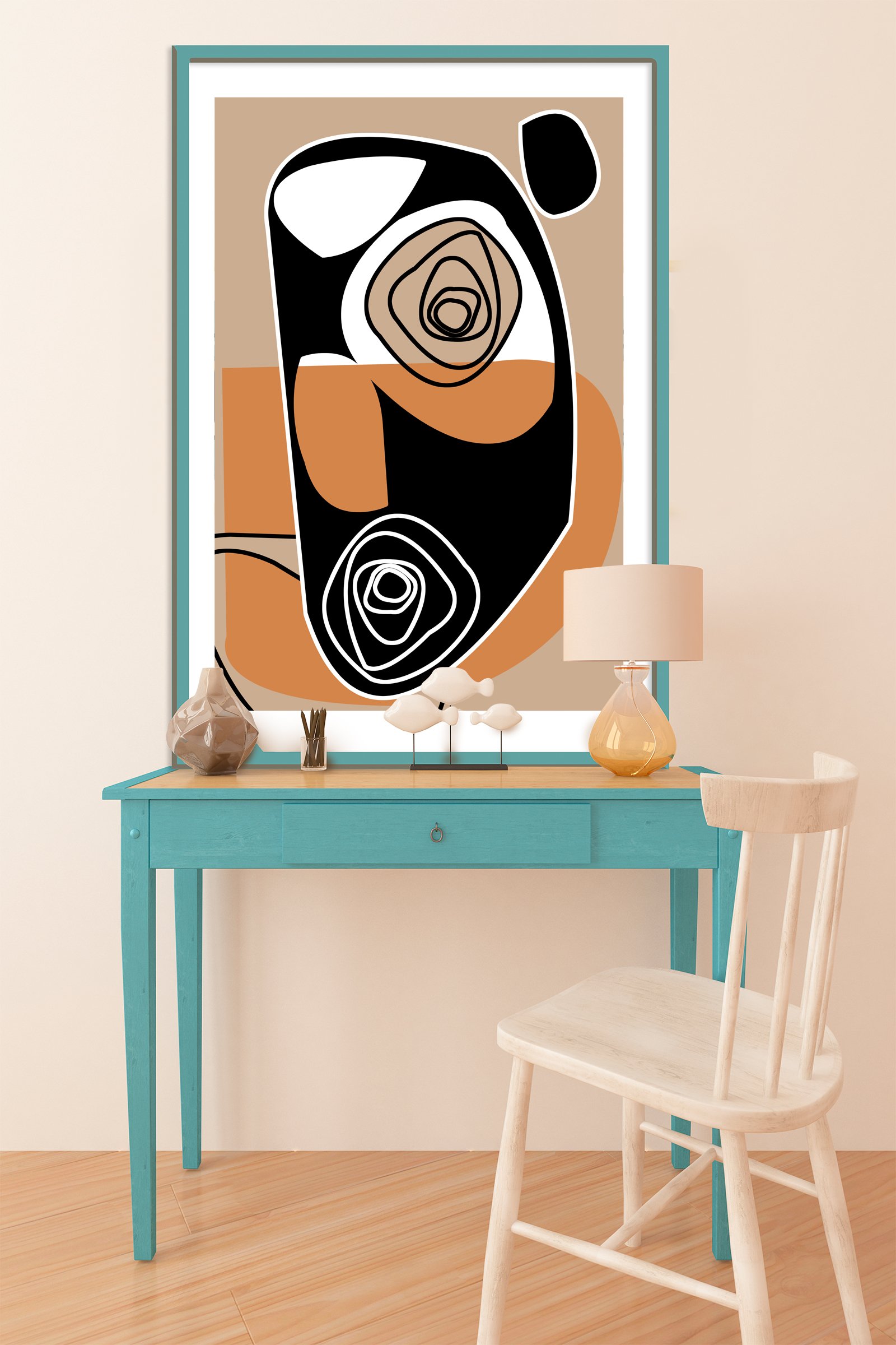 I created this painting to explore the intersection of nature and design. The intricate, swirling lines represent the natural paths we take in life. These topographic patterns sit perfectly against the solid blocks of terracotta and beige. Every curve in the Golden Ways painting tells a story of growth and continuity.